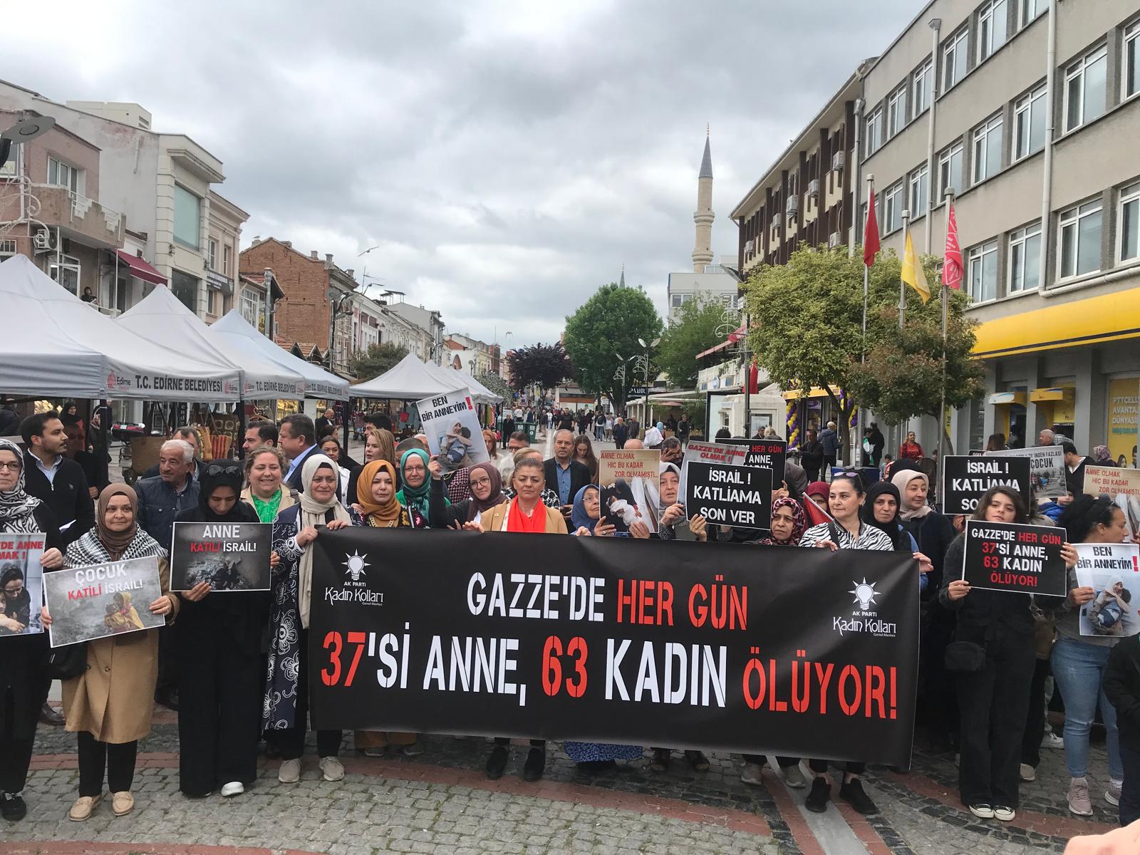 AK Parti Edirne Kadın Kolları Başkanlığı, yarın kutlanacak Anneler Günü öncesinde Gazze’de devam eden savaşta halen bölgede zorluklar içinde yaşayan annelerin sesi olmak için Saraçlar Caddesi’nde eylem gerçekleştirdi.