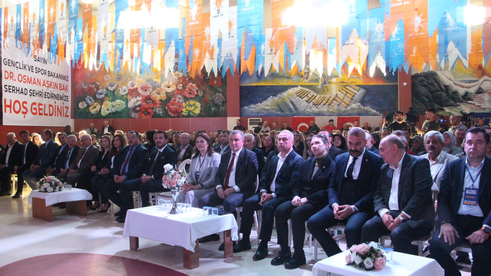 AK Parti Edirne Merkez İlçe Kongresi, Gençlik ve Spor Bakanı Osman Aşkın Bak’ın da katılımıyla, Irmak Düğün Salonu’nda yapıldı. Kongreye Bakan Bak’ın yanı sıra AK Parti Merkez Karar Yönetim Kurulu Üyesi, İstanbul Milletvekili Hasan Sert, İstanbul Milletvekili ve Edirne Koordinatörü Seda Gören Bölük, Edirne Milletvekili Fatma Aksal, AK Parti İl Başkanı Belgin İba ve MHP İl Başkanı Emre Tokluoğlu ile çok sayıda partili katıldı. Kongrede divan başkanlığını İstanbul Milletvekili Bölük yaptı.