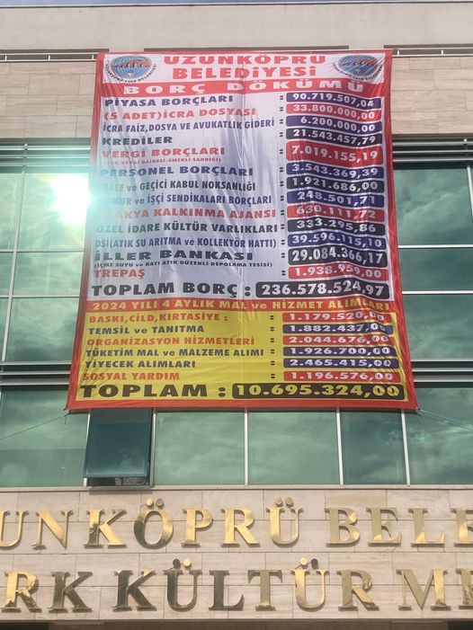 2024 yılında Uzunköprü Belediyesi bütçesi yaklaşık 650 Milyon TL. Mevcut Başkanın, Tredaş faturasını bile dahil ederek ite kaka çıkarmış olduğu toplam borç tutarı 236.578.524,97 TL. Yani mevcut bütçenin neredeyse üçte biri kadar. Bugün dolar 32,5 TL yani yaklaşık borç 7,3 Milyon dolar.