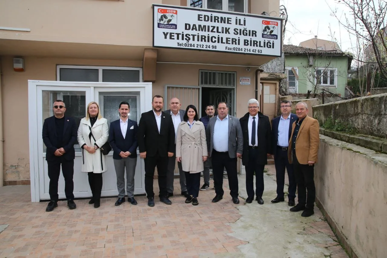 CHP Edirne Belediye Başkan Adayı Avukat Filiz Gencan Akın, Edirne Damızlık Sığır Yetiştiricileri Birliği Başkanı Tuncay Tunca ve yönetimini ziyaret ederek geçimini hayvancılıkla sağlayan vatandaşımızın sıkıntılarını dinledi. Gencan Akın, “Bereketli toprakları, eşsiz doğası ile tarımının, hayvancılığın şehri olan Edirne’mizde herkes hak ettiğini alsın diye çok çalışacağız. Üretici kazanacak! Edirne kazanacak” dedi.