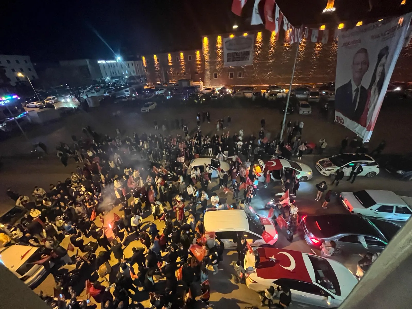 Kutlamalar partinin önünde bir süre daha devam etti.