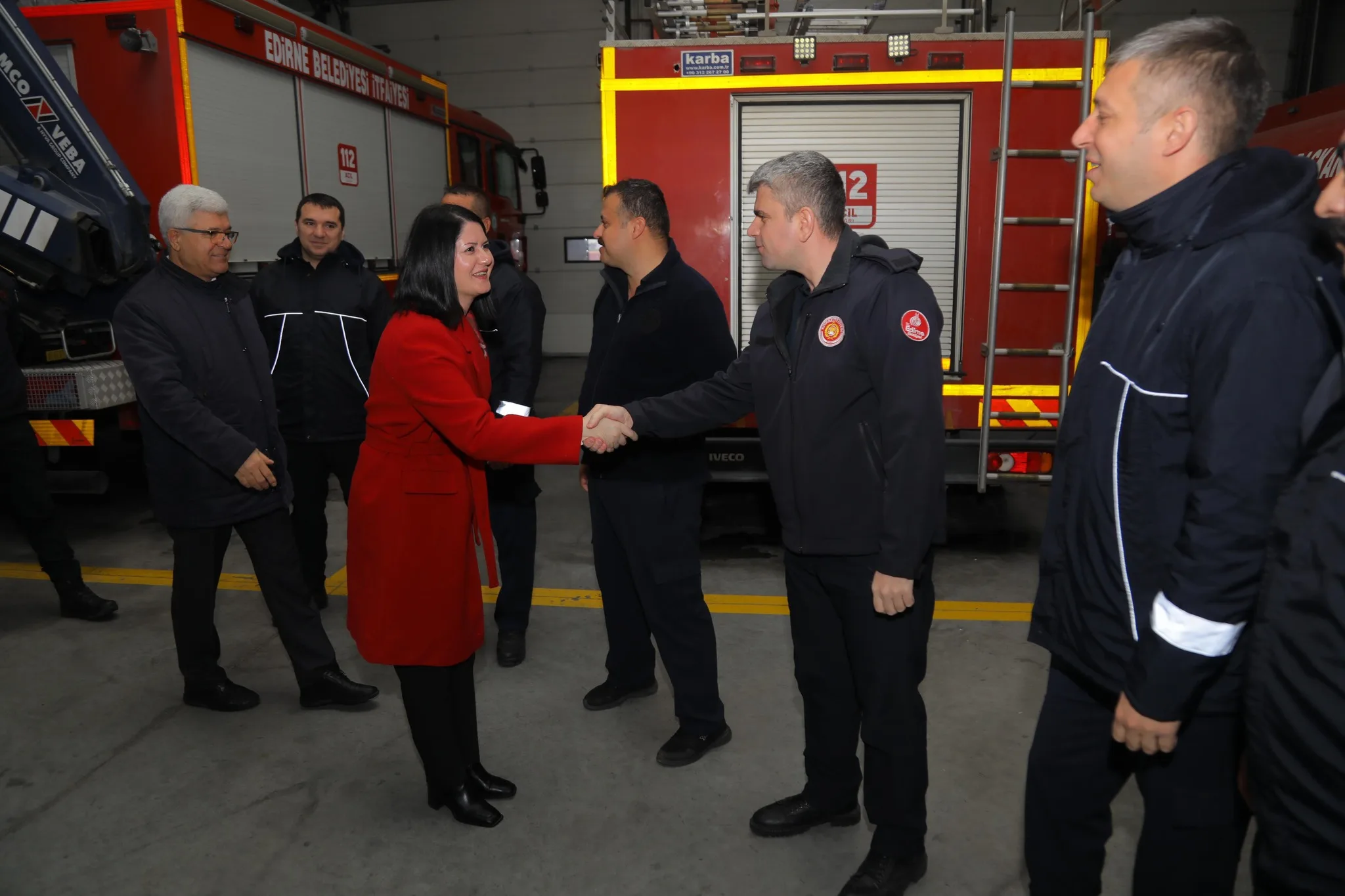 Edirne Belediye Başkanı Adayı Avukat Filiz Gencan Akın DSİ ziyareti sonrası Edirne Belediyesi İtfaiye Müdürlüğü’nü de ziyaret etti.