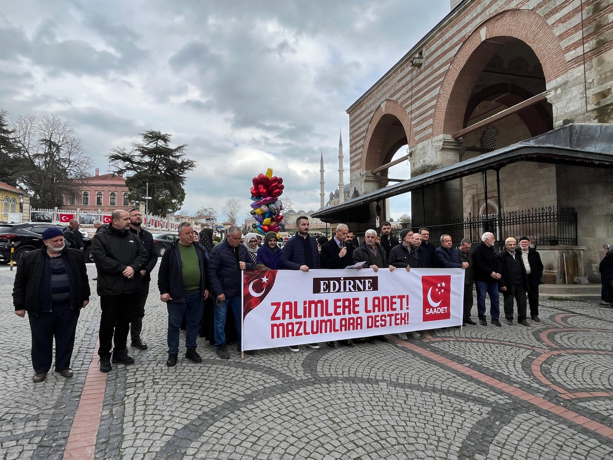 Saadet Partisi İl Başkanlığı tarafından, Cuma namazı çıkışında basın açıklaması gerçekleştirildi. Parti İl Başkanı Tezcan Karakütük’ün okuduğu açıklamaya, il yönetimi ve partililer destek verdi. Karakütük, açıklamada ABD ve İsrail saldırılarına tepki gösterirken, sürdürülen tarafsızlık politikasını da eleştirip, yaptırımlar uygulanması gerektiğini söyledi.