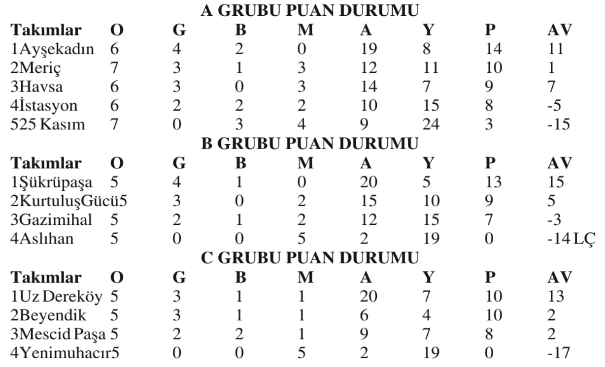 İstasyon 3-0 Meriç 25 Kasım 1-6 Havsa