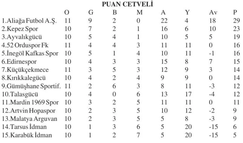 Edirnespor geçen hafta 4-1’lik Artvin Hopaspor galibiyeti ile puanını 15’e yükselterek 6’ncı sıraya yerleşirken, Malatya Arguvan Spor ise 9 puanla 13’üncü sırada yer alıyor.