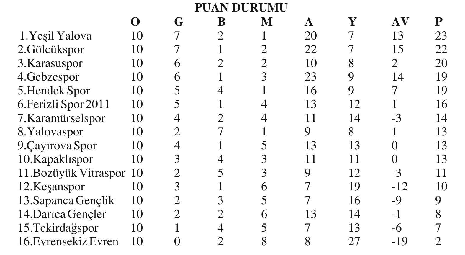 Keşanspor hafta ortasında Darıca İlçe Stadı’nda oynanan maçta aldığı galibiyetle puan cetvelinde 10 puanla 14’üncü sıradan 12’nci basamağa yerleşti. Sapanca Gençlik ise 9 puanla bir basamak altında yer alıyor.