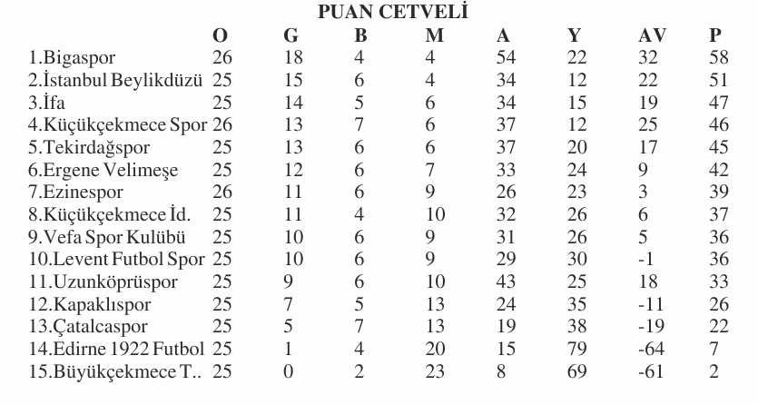 Bölgesel Amatör Lig 27. haftasında Uzunköprüspor deplasmanda grubun güçlü ekiplerinden İFA’ya 2-0 yenilirken, Edirne 1922 Futbol Spor Kulübü ise evinde Levent Futbol Spor Kulübü’ne 4-0 mağlup oldu…