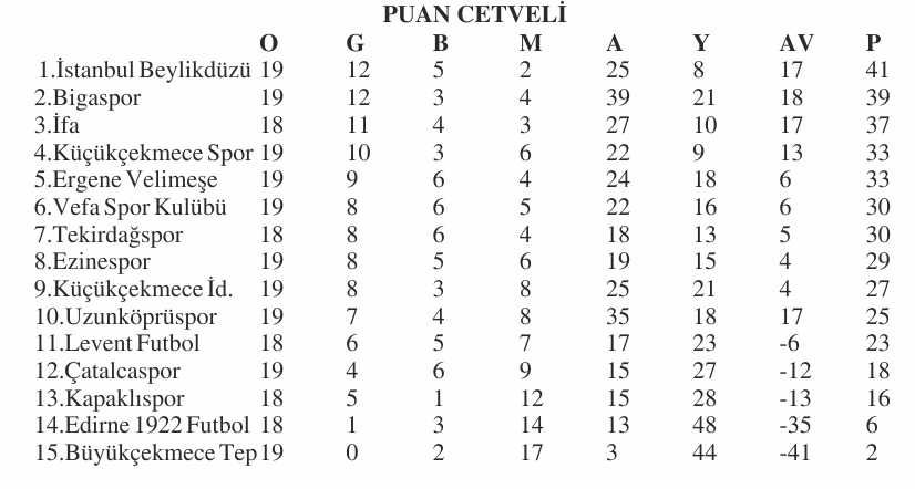 Küçükçekmece İdman Yurdu Spor Kulübü 1–4 Bigaspor
