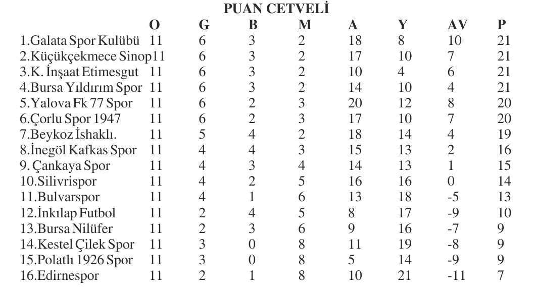NESİNE 3. LİG 1. GRUP 12. HAFTA TOPLU SONUÇLAR