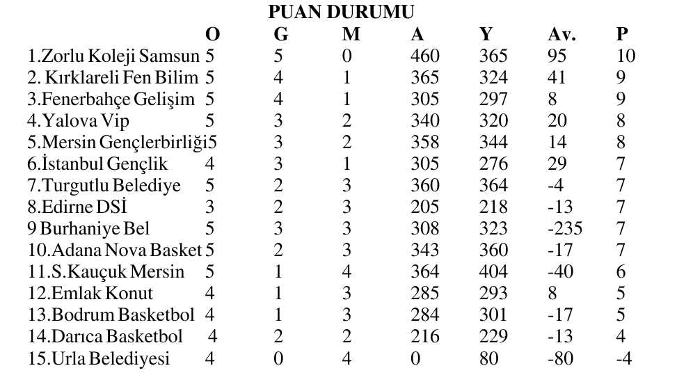 TKBL’DE 5. HAFTA SONUÇLARI