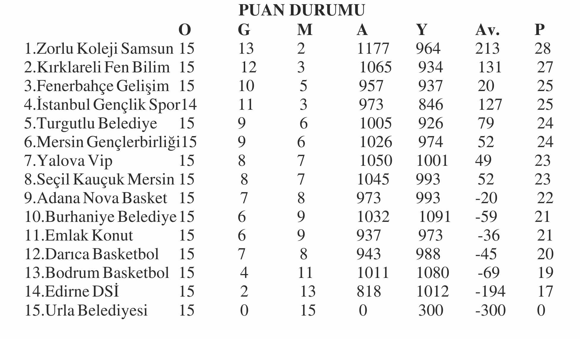 TKBL’DE 16. HAFTA TOPLU SONUÇLAR