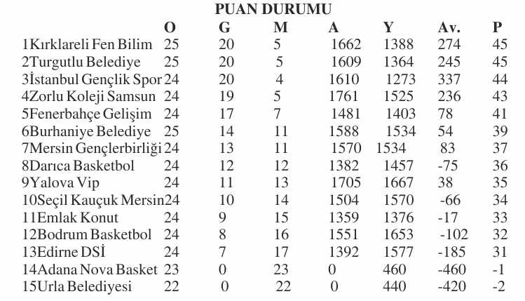 TKBL’DE 26. HAFTA TOPLU SONUÇLAR