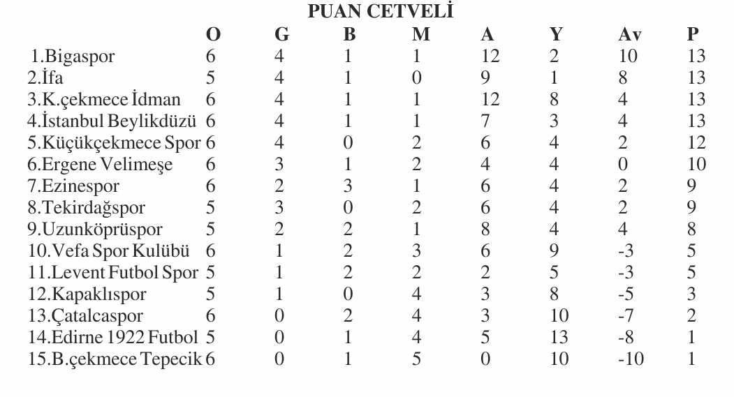 Küçükçekmece Spor 1–3 Bigaspor