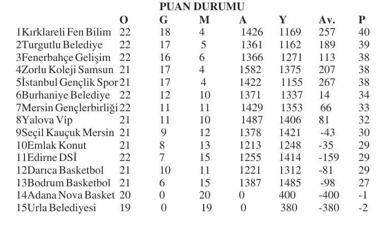 TKBL’DE 23. HAFTA TOPLU SONUÇLAR