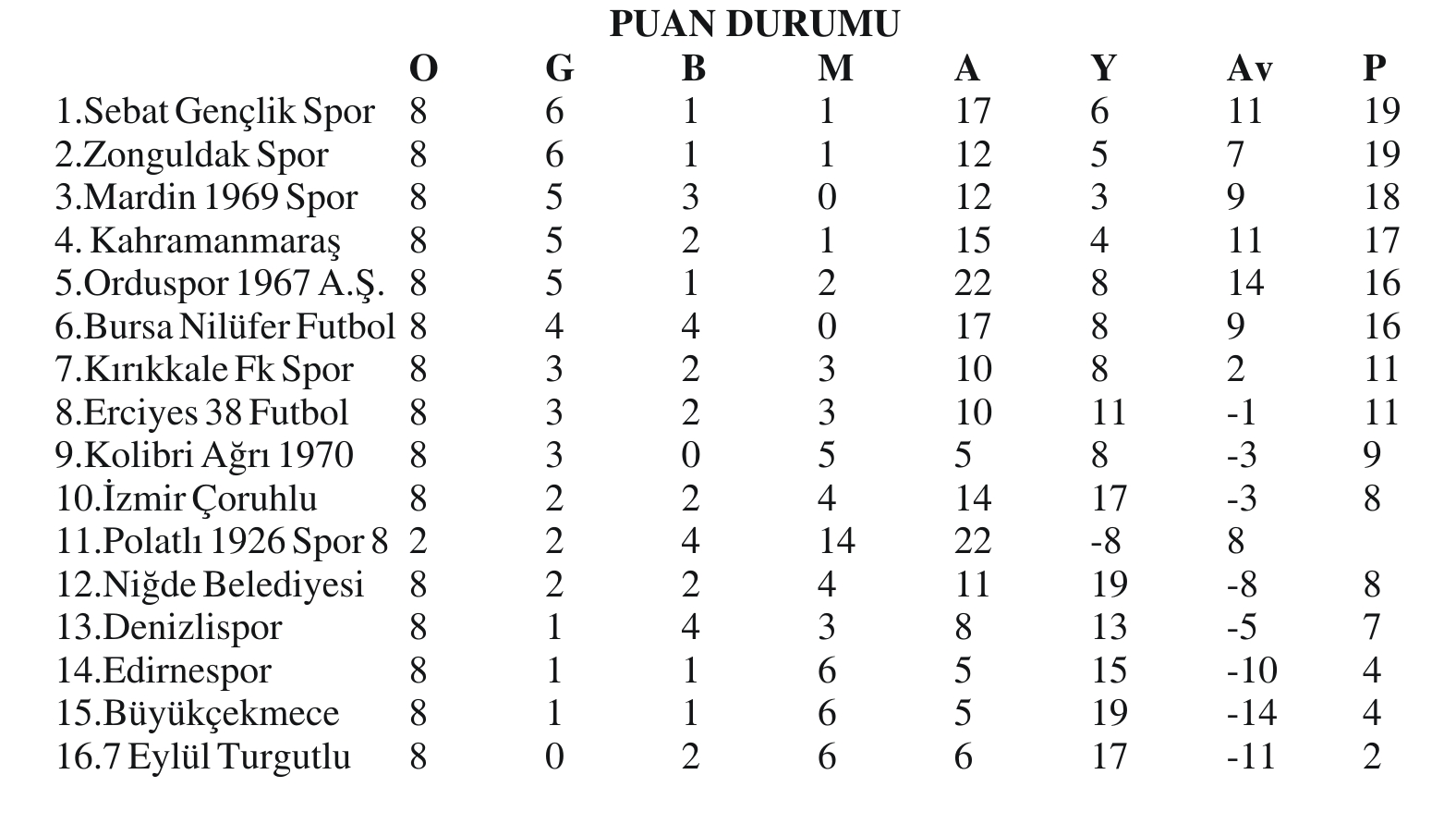 NESİNE 3. LİG 4. GRUP 8. HAFTA TOPLU SONUÇLAR