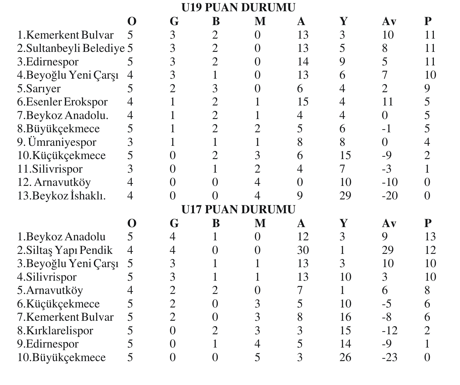 Edirne SporU17 ise aynı gün Saraçhane sahasında Kemerkent Bulvarspor’e 3-1 yenilerek5 maçtaki 4’üncü mağlubiyetle yine puan cetvelinin 9. sırasında yer aldı.