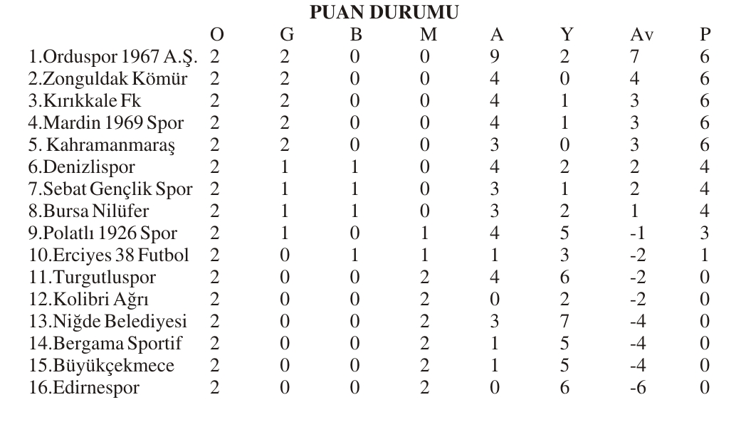 3.LİG 4. GRUP 2. HAFTA TOPLU SONUÇLAR
