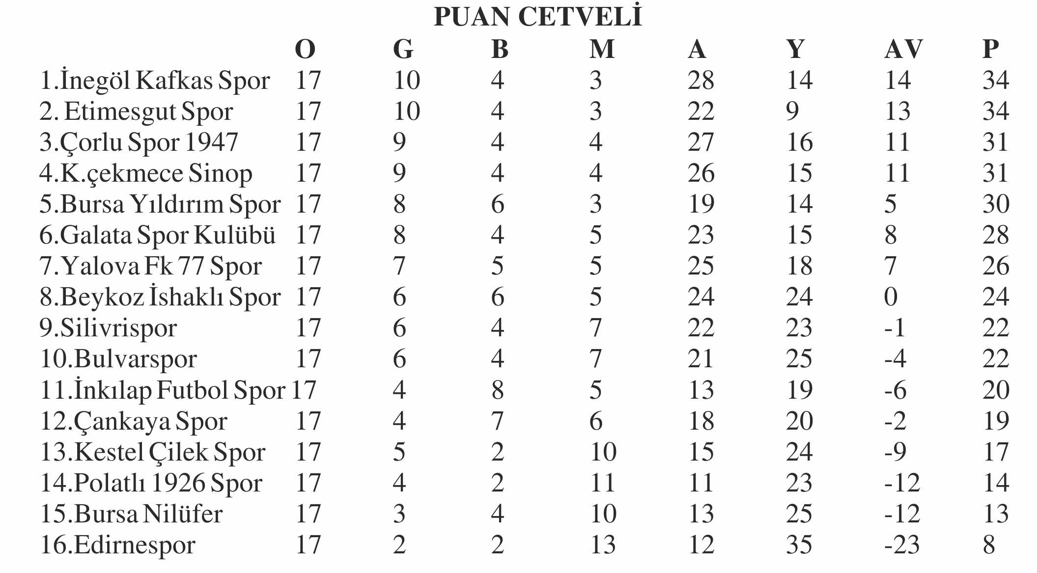 NESİNE 3. LİG 1. GRUP 17. HAFTA TOPLU SONUÇLAR