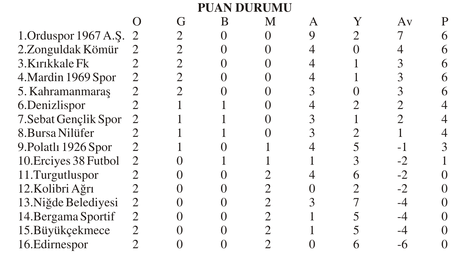 3.LİG 4. GRUP 2. HAFTA TOPLU SONUÇLAR
