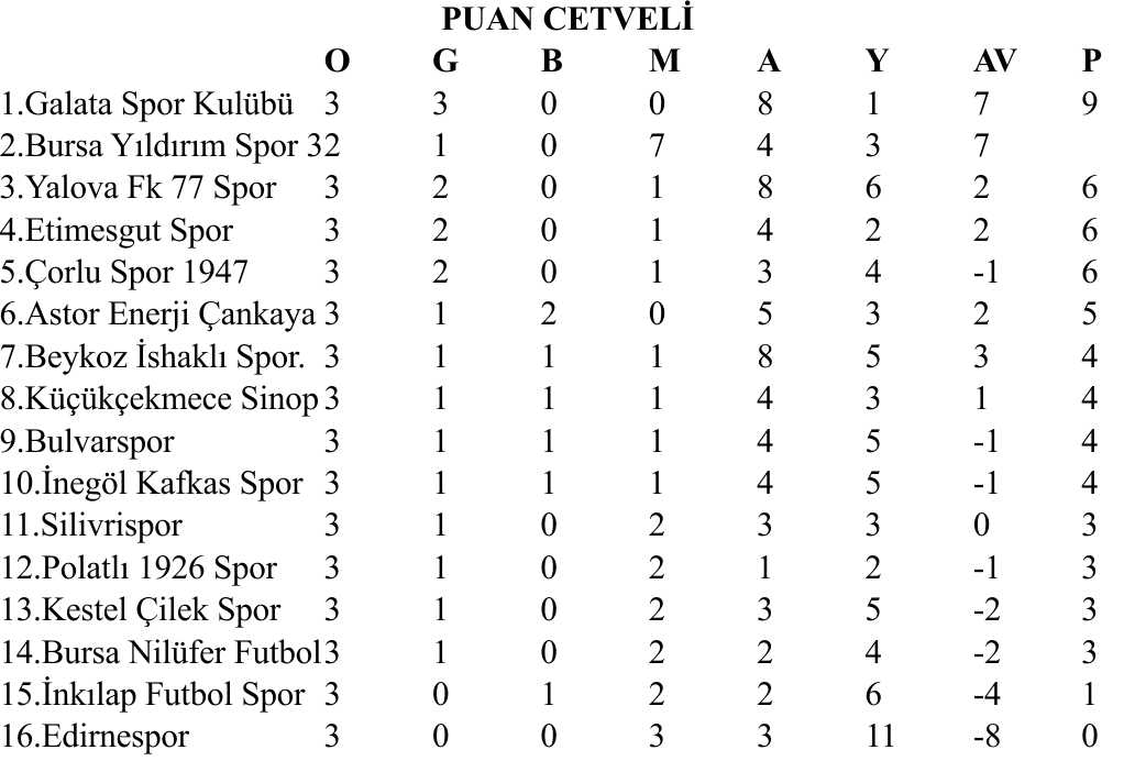 Nesine 3. Lig 1. Grup’ta 3. hafta 8 karşılaşma ile geride kalırken fileler tam 23 kez havalandı. .Galata Spor Kulübü 3’te 3 yaparak grup liderliği sürdürdü.