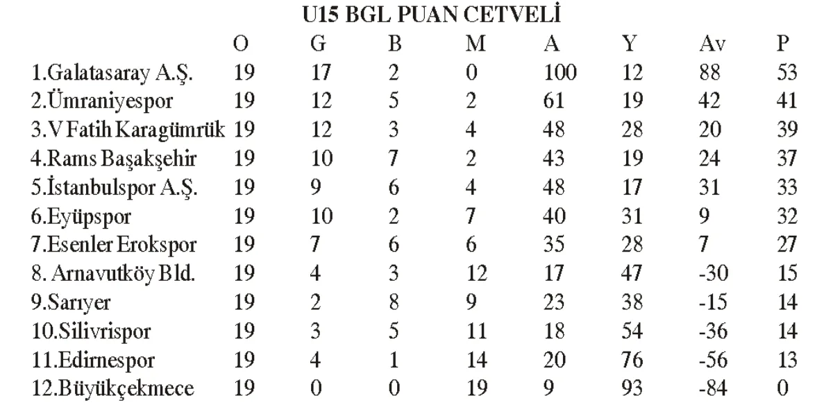 U15 BGL 19.HAFTA TOPLU SONUÇLAR