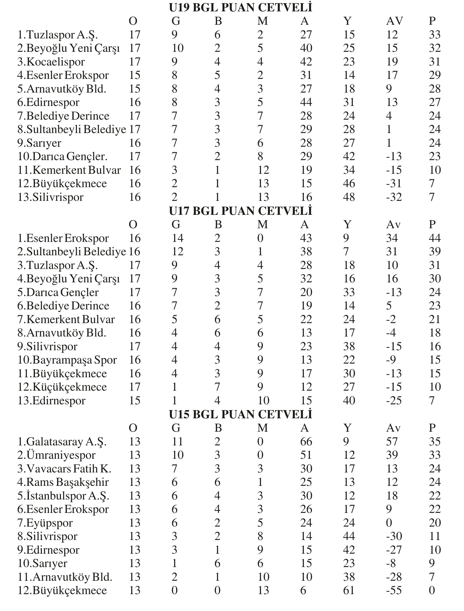 U15 BGL13. HAFTA TOPLU SONUÇLAR