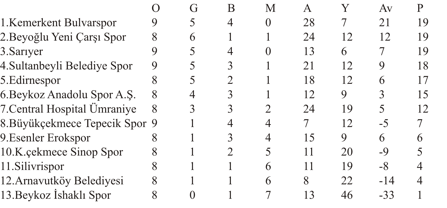 07.12.2024 12:00 Kuzey Marmara A.Ş. Arnavutköy Belediyesi Futbol Sk – Central Hospital Ümraniyespor