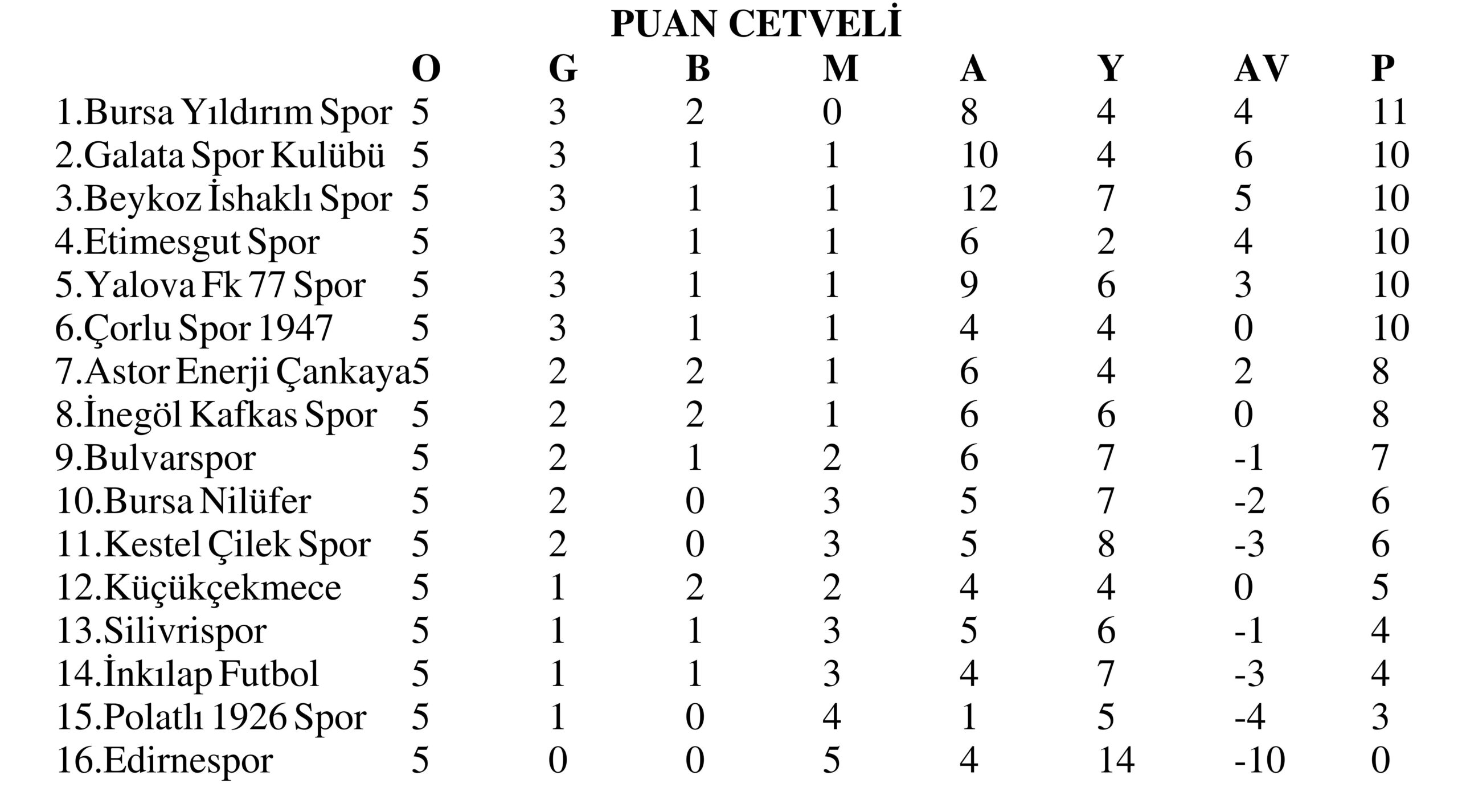 NESİNE 3. LİG 1. GRUP 5. HAFTA TOPLU SONUÇLAR