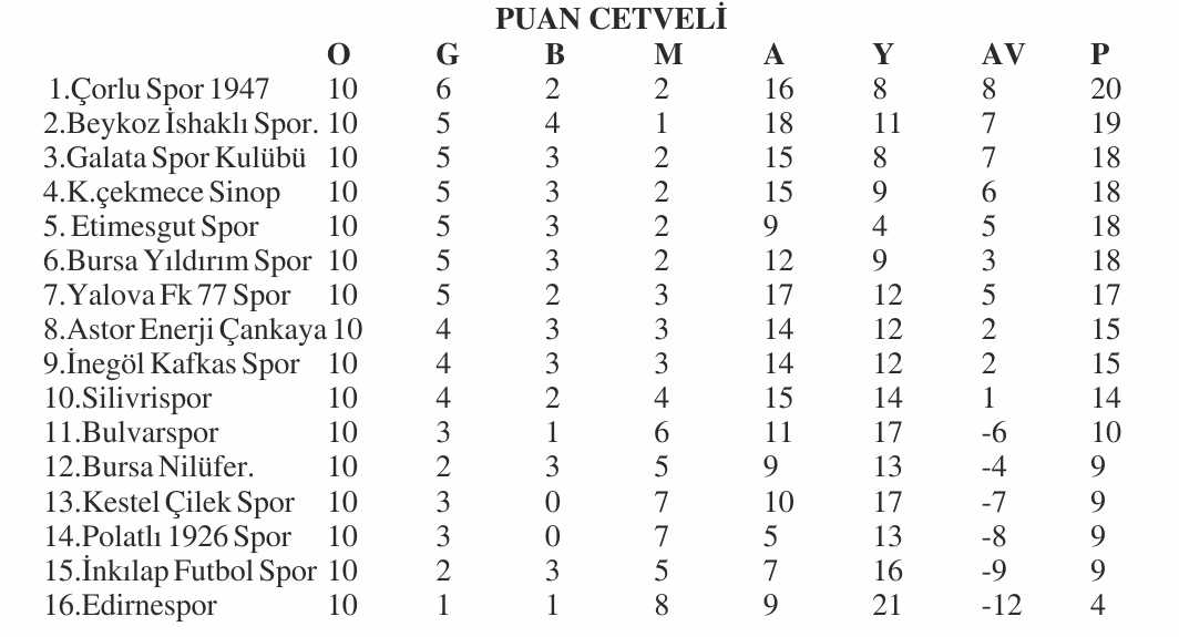 NESİNE 3. LİG 1. GRUP 10. HAFTA TOPLU SONUÇLAR