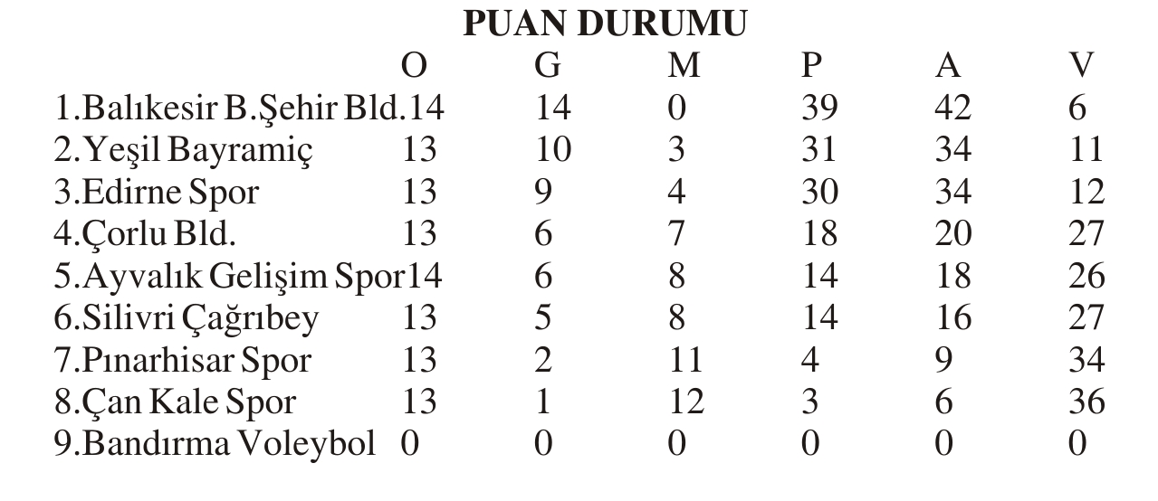 Bandırma Voleybol’un ligden çekilmesi nedeniyle geçen haftayı maç yapmadan geçiren Edirnespor son maçında 26 Ocak Pazar günü Yeşil Bayramiç’i konuk edecek. Karşılaşma Mimar Sinan Spor Salonu’nda saat 14.00’de oynanacak.