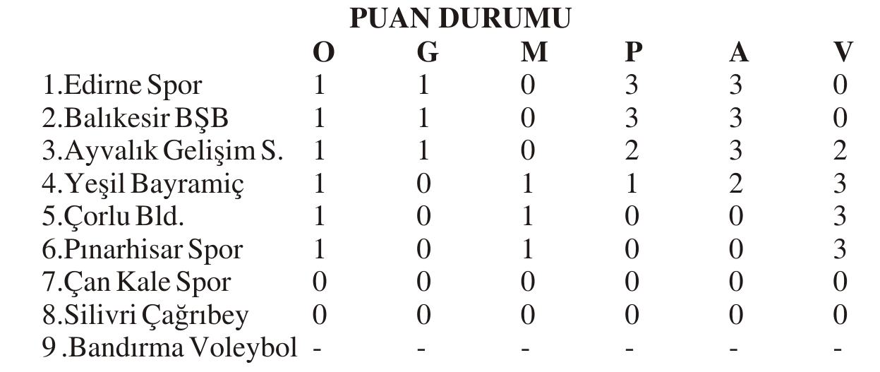 Edirne Spor 30 Pınarhisar Spor 25-8, 25-18, 25-11