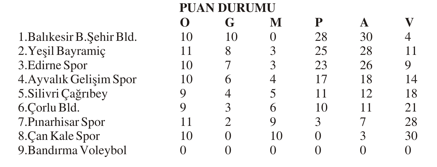 Çorlu Bld.0-3 Yeşil Bayramiç (16-25) (20-25) (22-25)