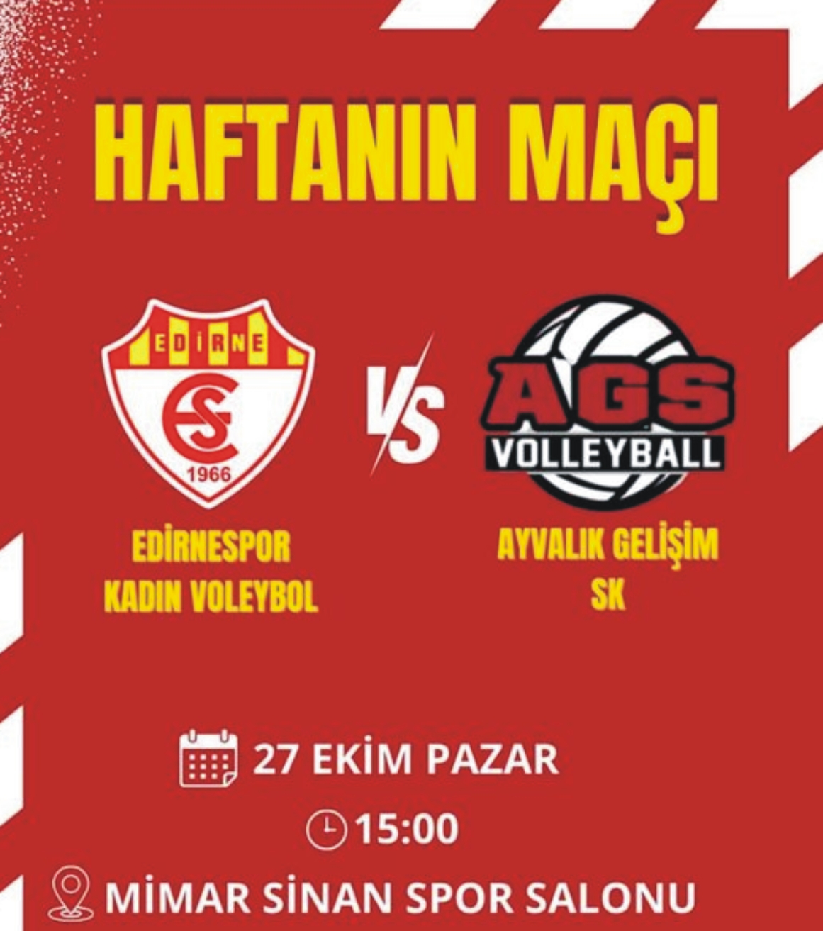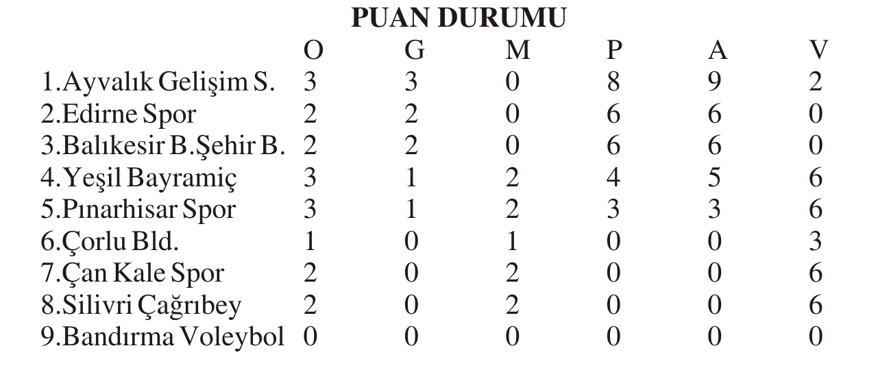 Kadınlar Voleybol 2. Ligi 4. Grup’ta 3. hafta bay olması nedeniyle maç eksiği ile ilk sıradan ikinci sıraya gerileyen Edirne Spor, grup/ liderliğine yükselen Ayvalık Gelişim Spor ile Mimar Sinan Spor Salonu’nda saat 15.00’te karşı karşıya gelecek.