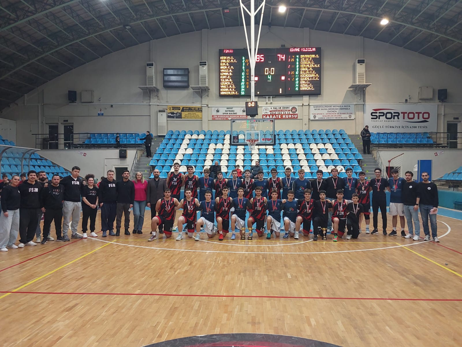 2025/2026 U 18 Edirne Erkekler Basketbol Ligi’nde son maçta rakibi Edirne Yıldızlarını 85-74 yenen Fatih Sultan Mehmet Ortaokulu A Takımı (FSM A) şampiyon oldu.