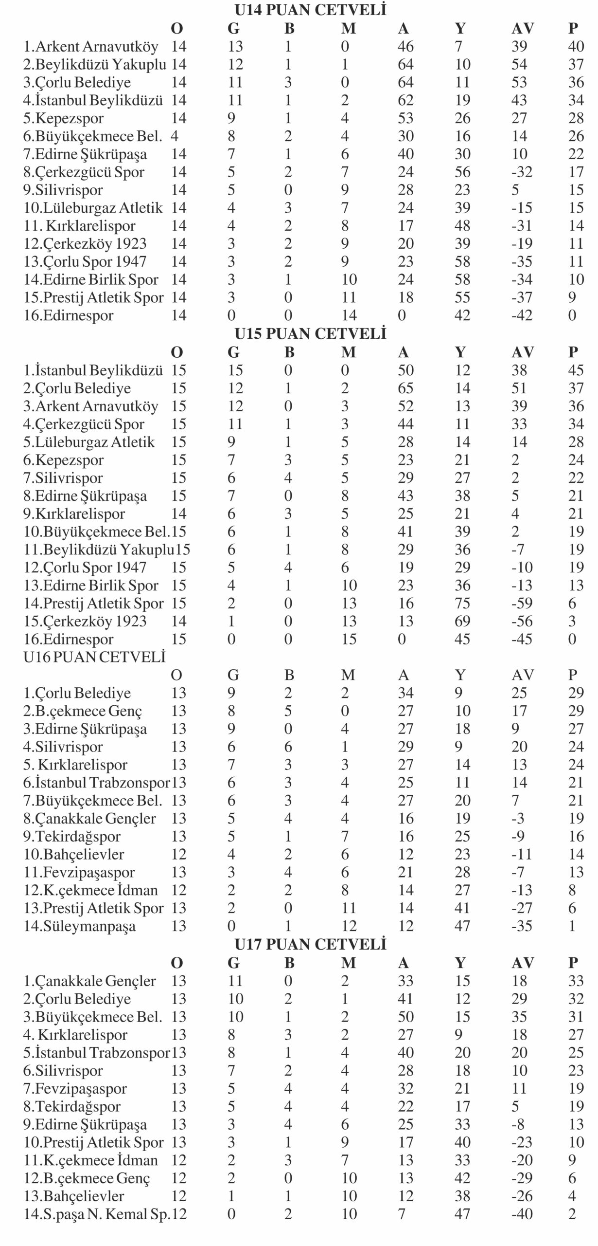 U14 Gelişim Ligi’nde Edirne Birlik Spor ve Şükrüpaşa Spor, U16 ve U17’de Şükrüpaşa Spor ilk yarının son maçında rakiplerini yenerken, U15 Gelişim Ligi’nde Edirne Birlik Spor berabere kaldı, Şükrüpaşa Spor ise haftayı puansız kapayan tek takım oldu.