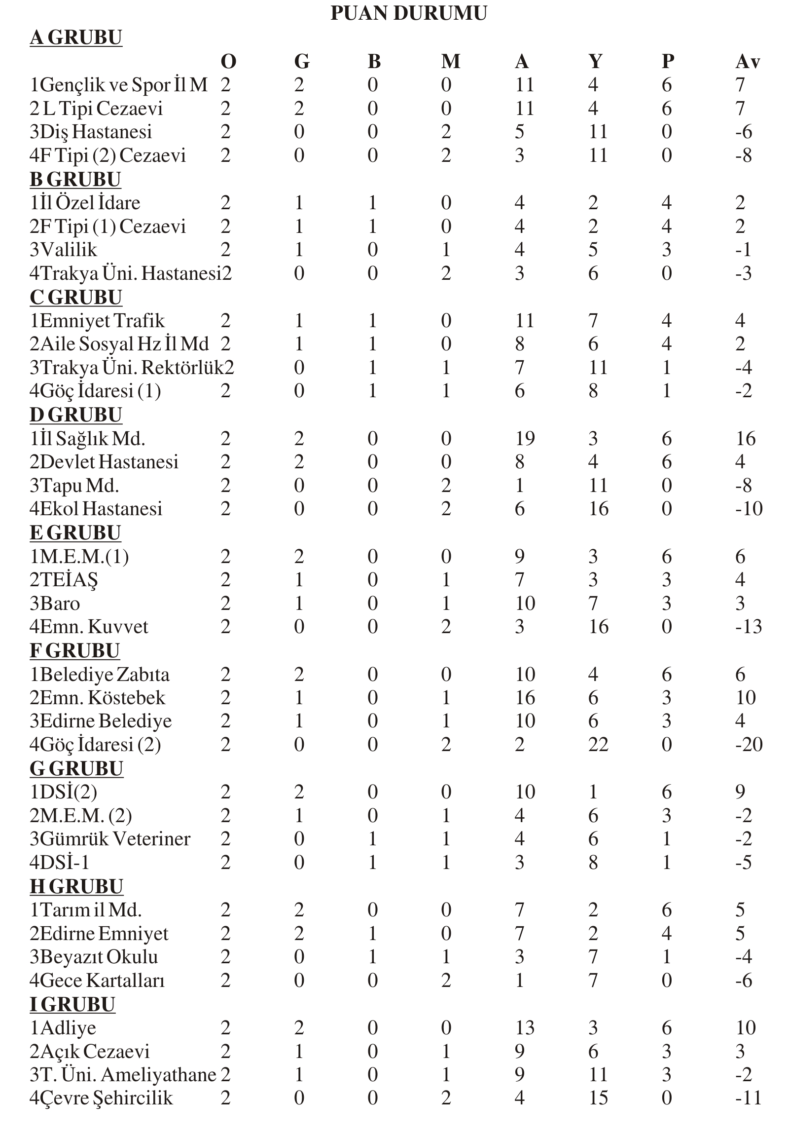 Türkiye Futbol Federasyonu (TFF) Edirne İl Temsilciliği ile Edirne Gençlik ve Spor İl Müdürlüğü’nce düzenlenen Edirne Gençlik Haftası Kurum ve Ku-ruluşlararası Halı Saha Futbol Turnuvası’nda 2. hafta maçları ta-mamlandı.