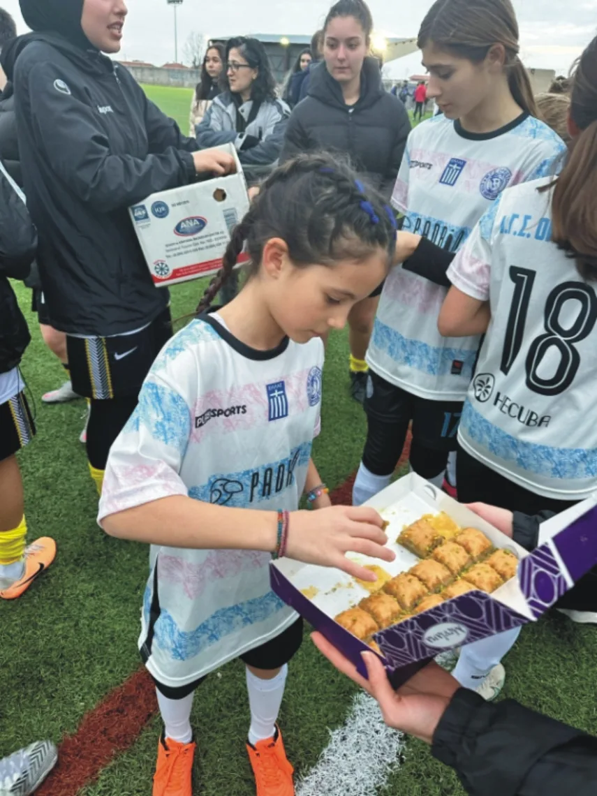 Orestis Kadın Futbol Takımı ile Orestiada Stadı’ndan dostluk maçı yapan Karaağaç Arda Spor, ev sahibi takımın oyuncularına baklava ikram etmekten de geri kalmadı.