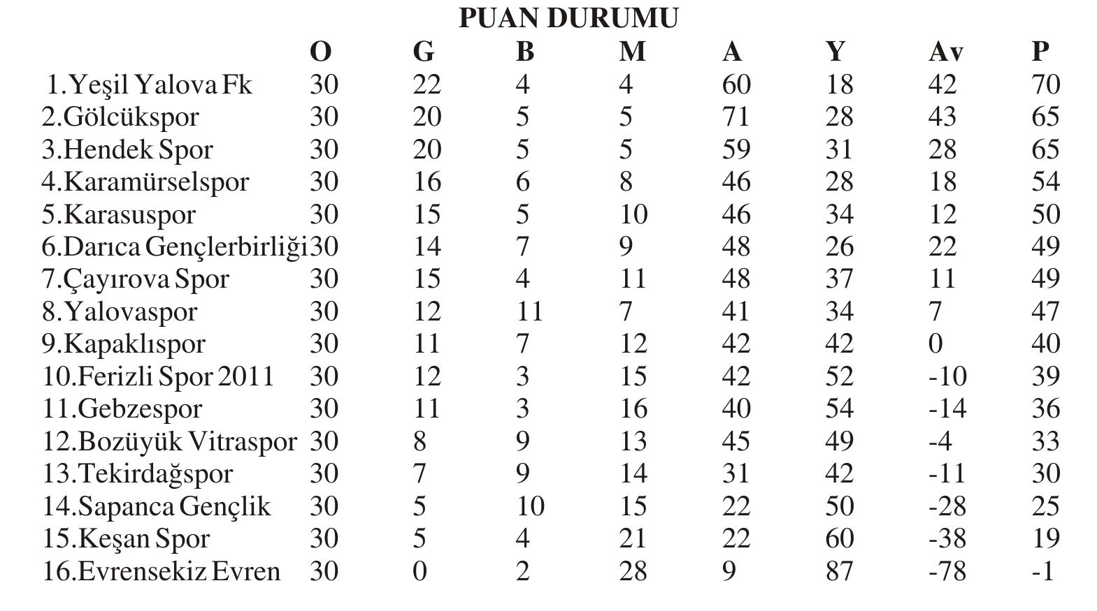 BAL 9. GRUP 30. HAFTA TOPLU SONUÇLAR