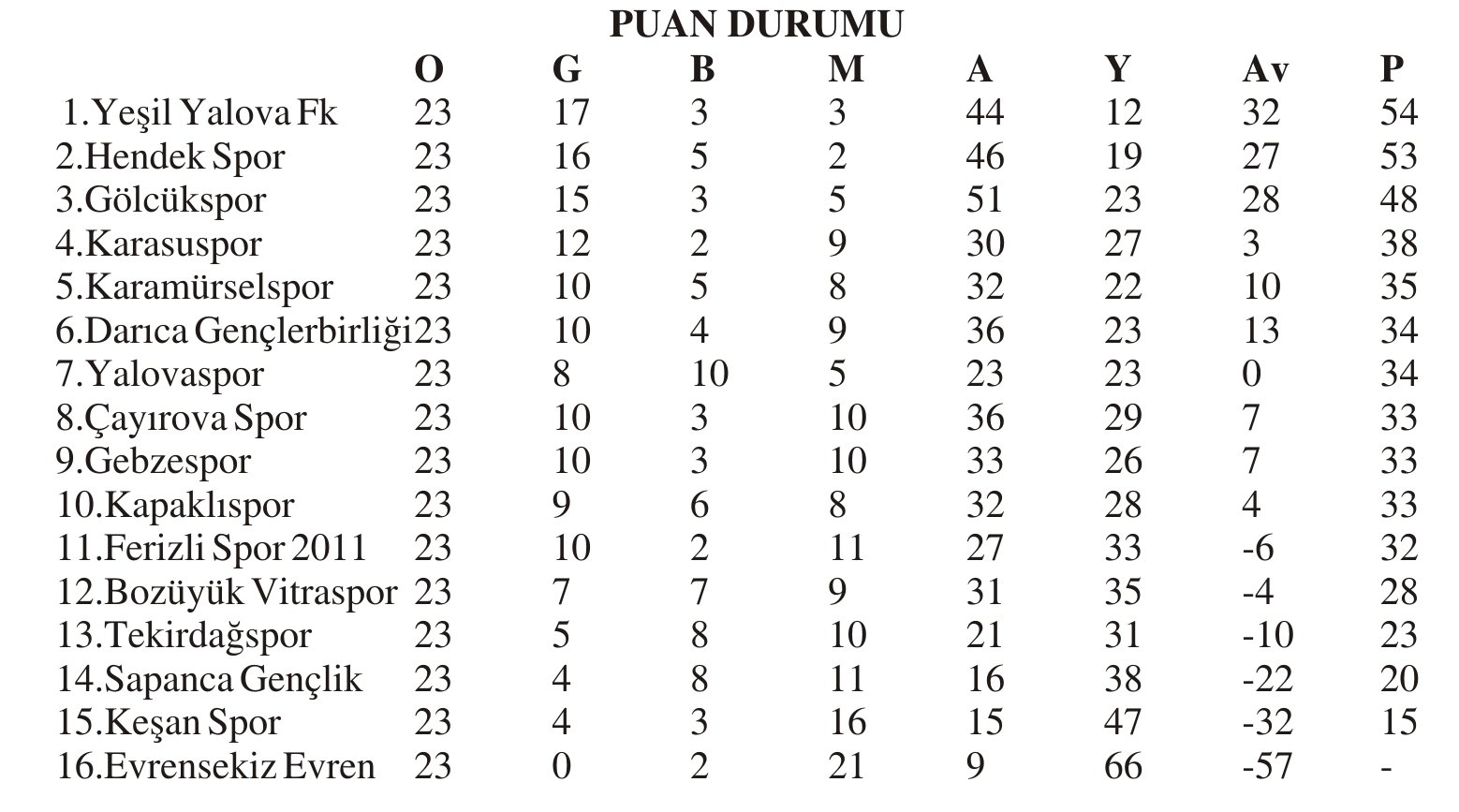 BAL 9. GRUP 23. HAFTA TOPLU SONUÇLAR