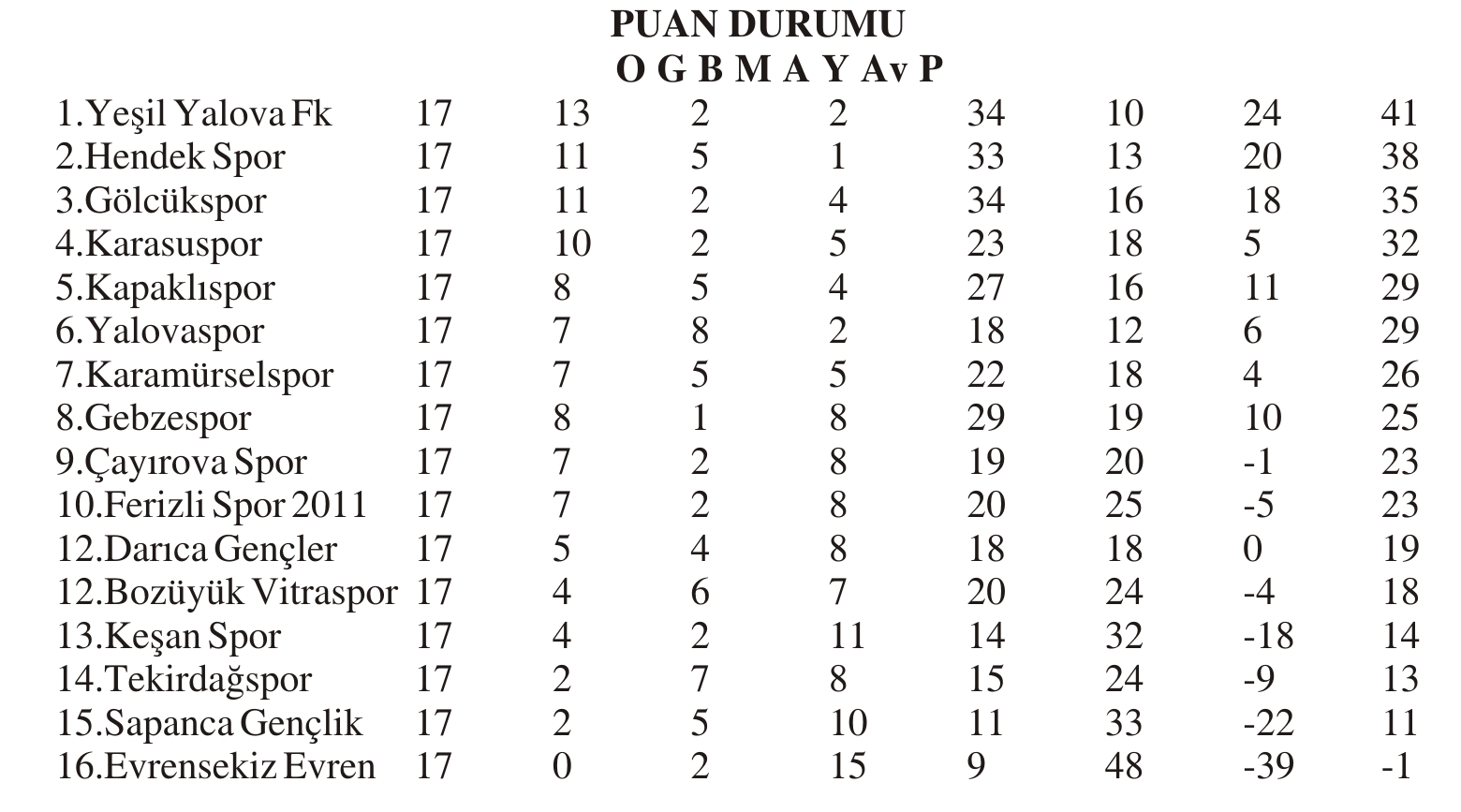 BAL 9. GRUP 17. HAFTA TOPLU SONUÇLAR