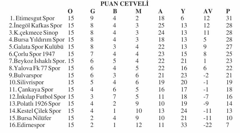 Edirnespor’un yer aldığı Nesine 3. Lig 1. Grup’ta sezonun ilk yarısını Karalar İnşaat Etimesgut Spor Kulübü  lider olarak kapadı.