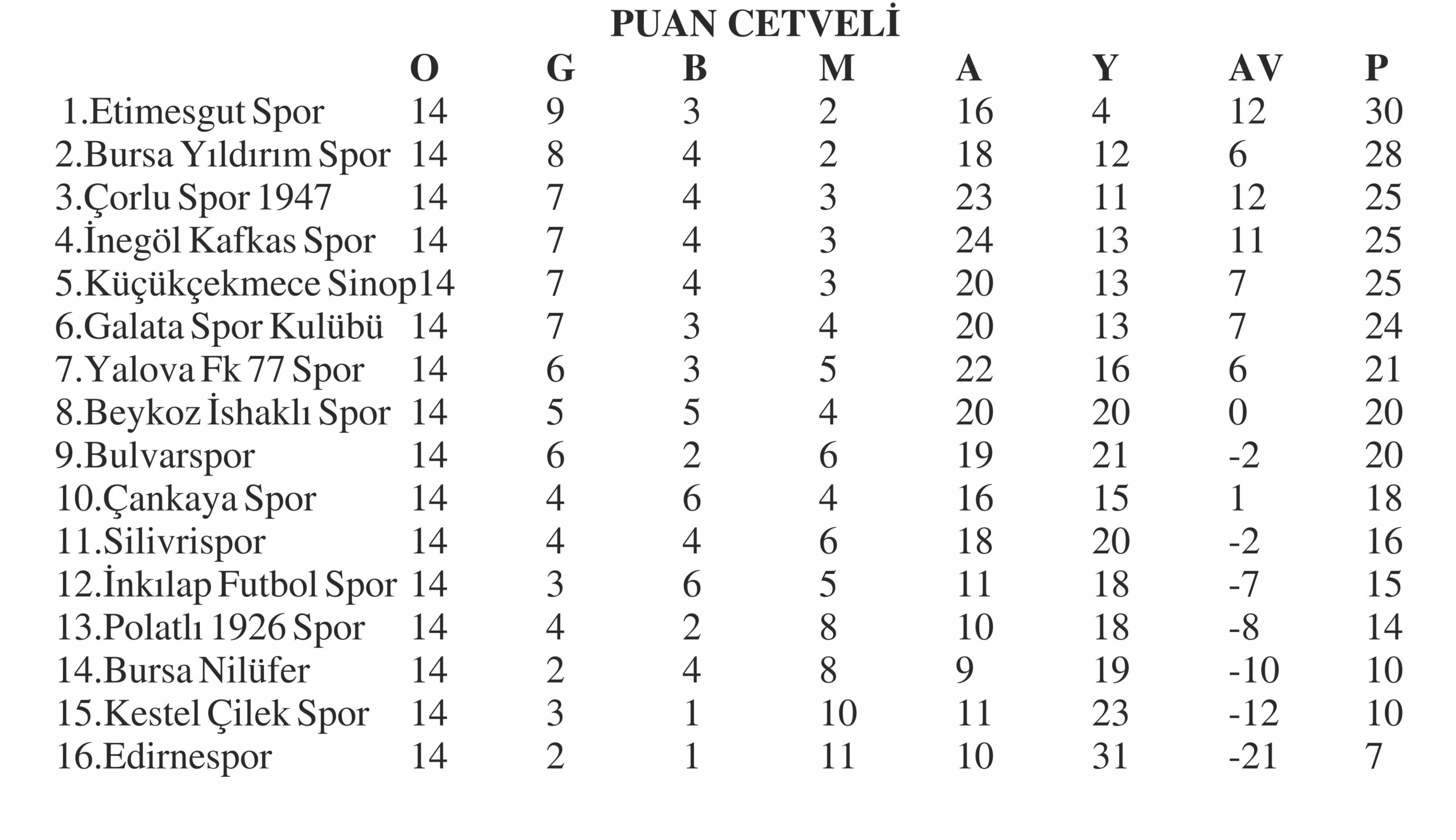 Beykoz İshaklı Spor Faaliyetleri A.Ş 20 puanla 8, Edirnespor ise 7 puanla son sırada bulunuyor.