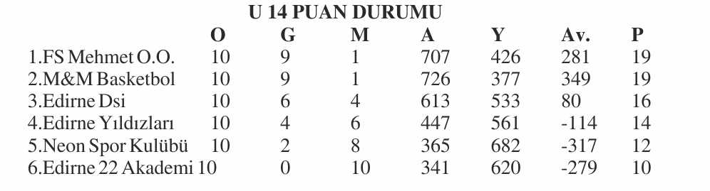 Edirne U-14 Basketbol Erkekler Ligi’nde 2025-2026 sezonu sona ererken, 8 karşılaşmanın geride kaldığı Edirne Büyük Erkekler Basketbol Ligi’nde ise mücadele tam gaz devam ediyor.