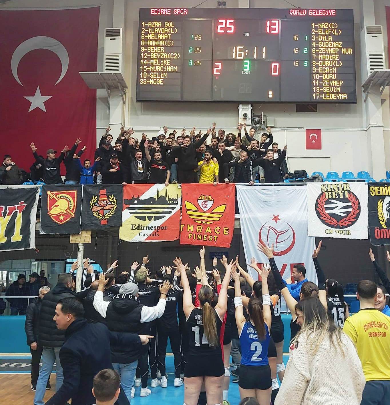 Kadınlar Voleybol 2. Ligi’nde son 3 haftaya girilirken Çorlu Bld. ile Mimar Sinan Spor Salonu’nda karşı karşıya gelen Edirnespor, rakibini 3-0 yenerek play-off yolunda çok önemli bir adım attı.