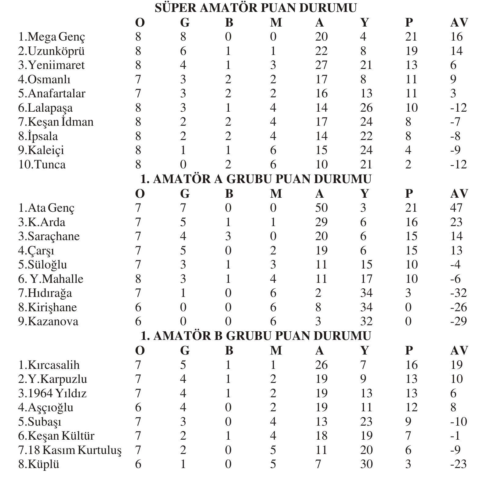 1.AMATÖR LİG’DE GEÇEN HAFTANIN TOPLU SONUÇLARI