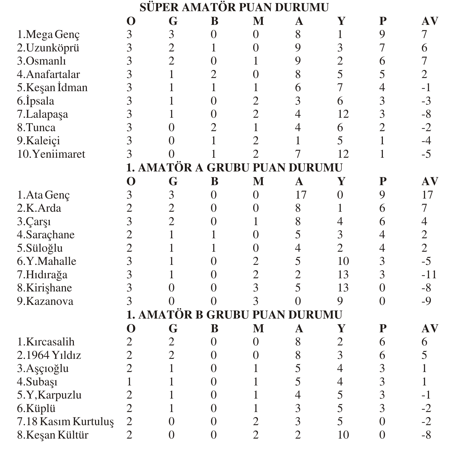 1.Amatör Lig A Grubu’nda da lider Ata Genç 3 maçta, B Grubu’nda da Kırcasalihz ve 1964 Yıldız 2 maçta puan kaybetmeyen takımlar olarak dikkat çekiyor.