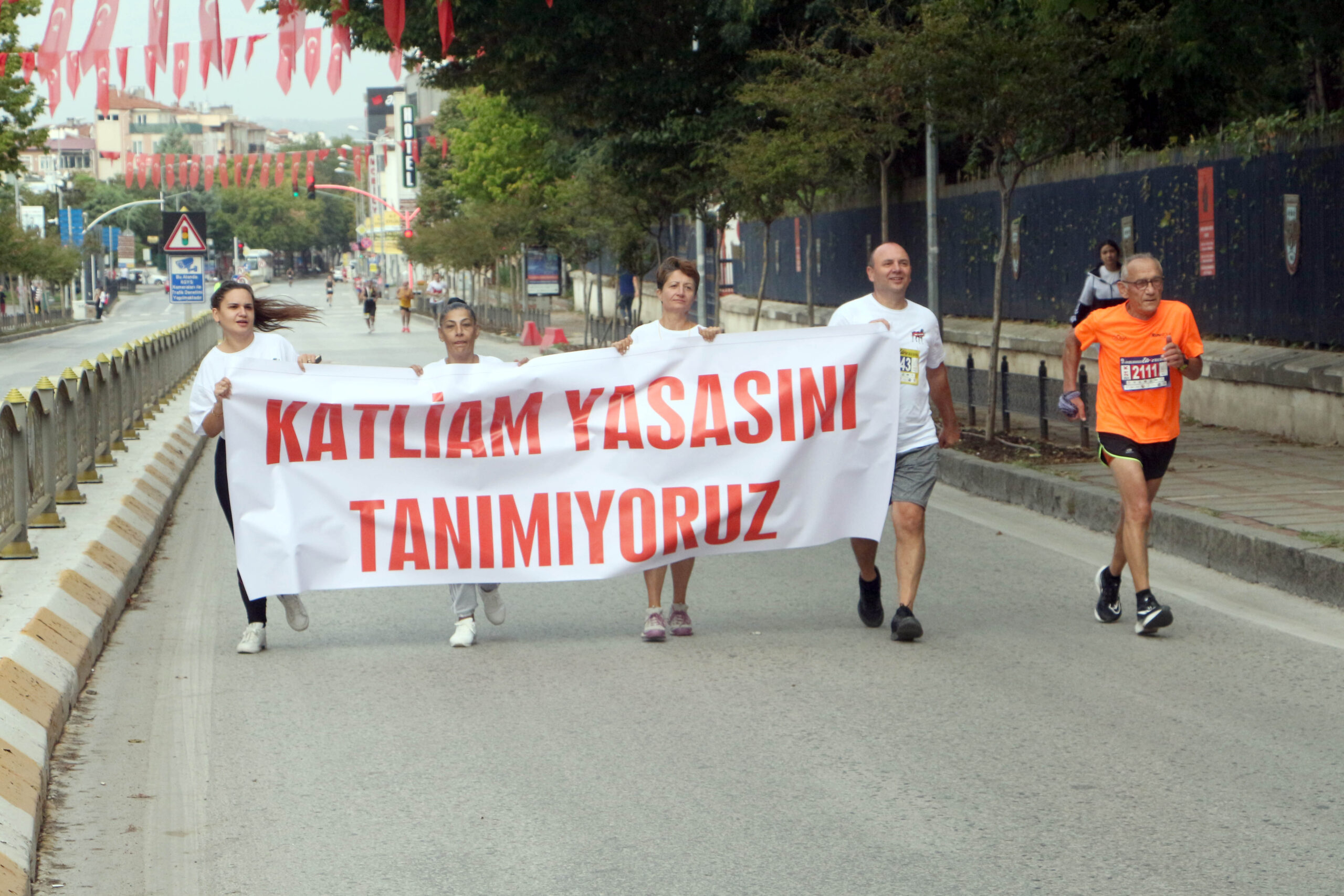 KATLİAM YASASINI TANIMIYORUZ PANKARTIYLA KOŞTULAR