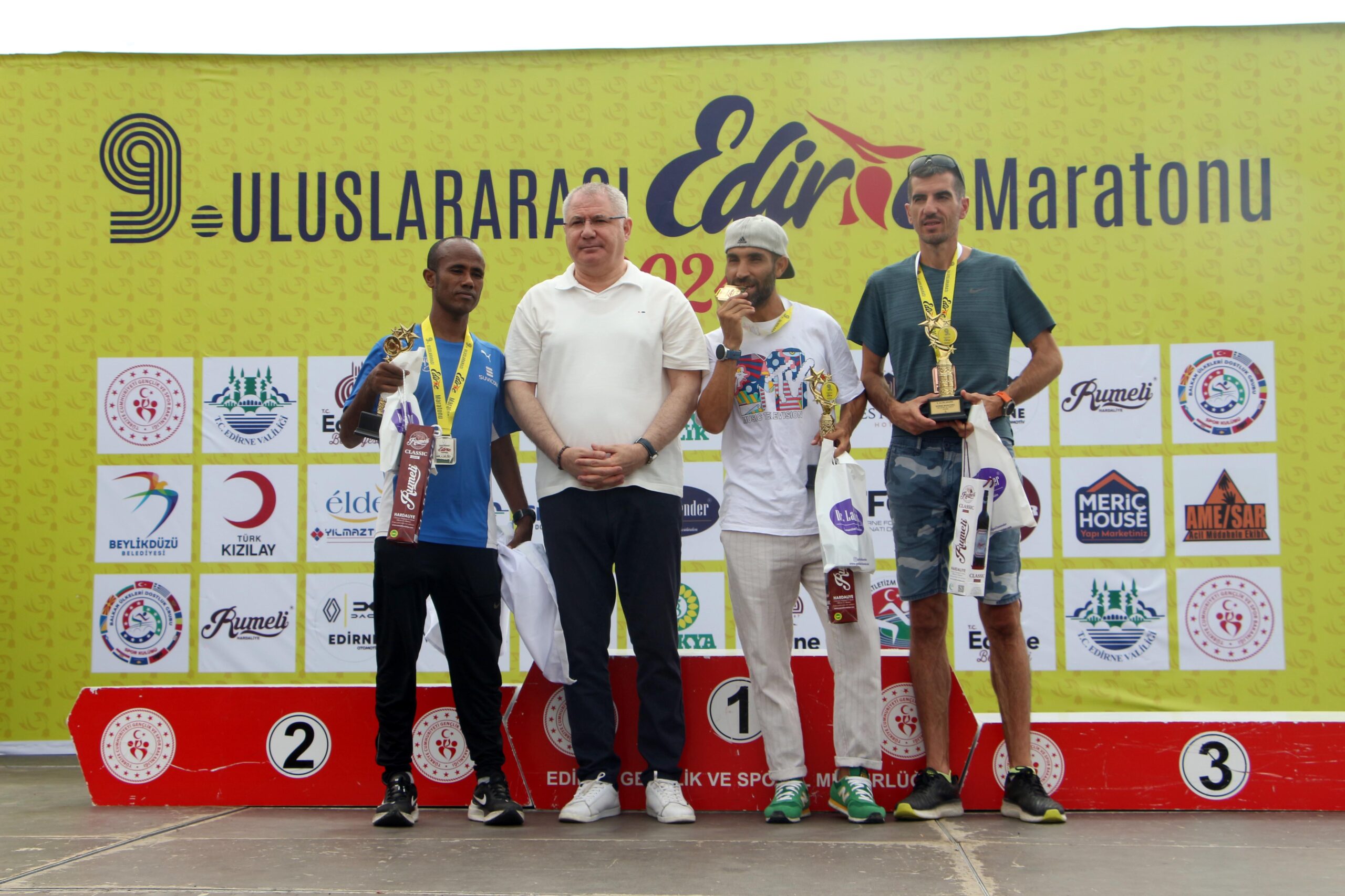 Yarışmanın birincisi milli atlet Üzeyir Söylemez, bu yıl ikinci kez Edirne Maratonu’na katıldığını belirterek, “Bu yıl ikinci kez katılıyorum. Geçen sene de katılmıştım ama sağlık sorunum nedeniyle tamamlayamamıştım yarışı. Çok güzel ve rahat geçti bu sene. Mevsime göre güzel bir yarış, hava çok güzel iki gündür yağmur yağdığı için. Parkura gelecek olursak değişken ve zor bir parkur olsa da sıkmıyor çünkü iki ayrı ülke arasında koşuyorsunuz. Edirne zaten tarihi eserlerle dolu, kendi başına bir başkent. Tüm duyguları yaşayabiliyorsunuz koşarken, seyir zevki olan bir parkur. Hep beraber el birliğiyle Edirne’deki gibi bu yarışları büyüteceğiz, buna inanıyoruz” diye konuştu.