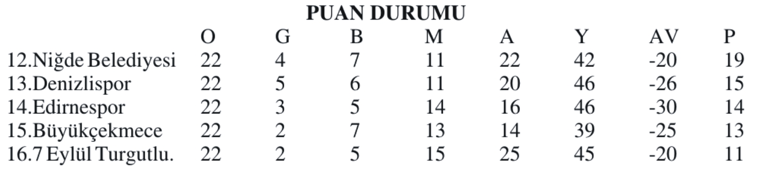 NİĞDE BELEDİYESİ SPOR 19 PUAN