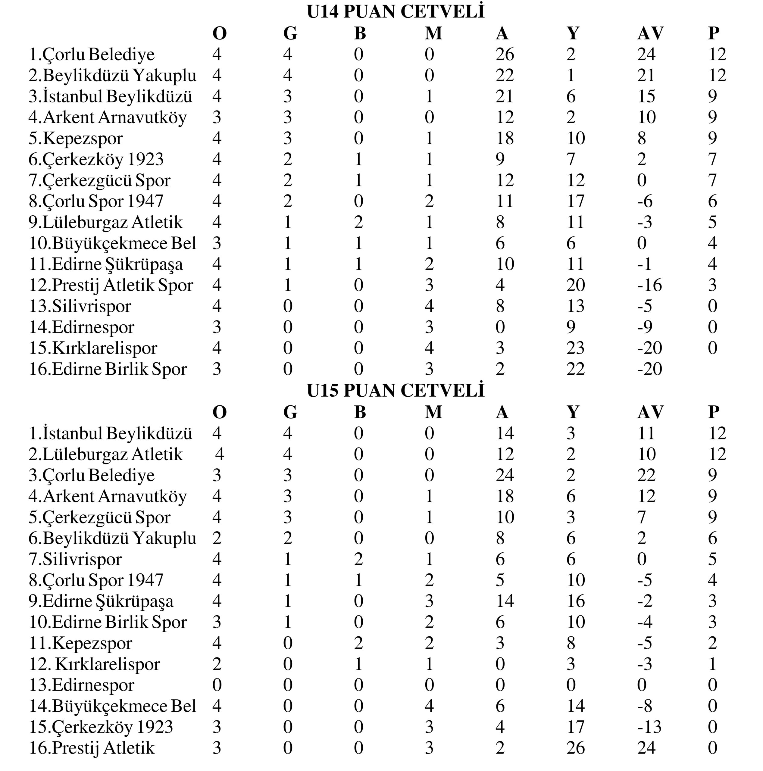 Edirne Şükrüpaşa Spor U14 ve U15 takımları Gelişim Ligi’nin 4. haftasında Çorlu Belediye Futbol Kulübü ile Saraçhane 2 Nolu Sentetik Saha’da peş peşe oynadığı iki maçta rakibine aynı skorla 4-2 yenildi.